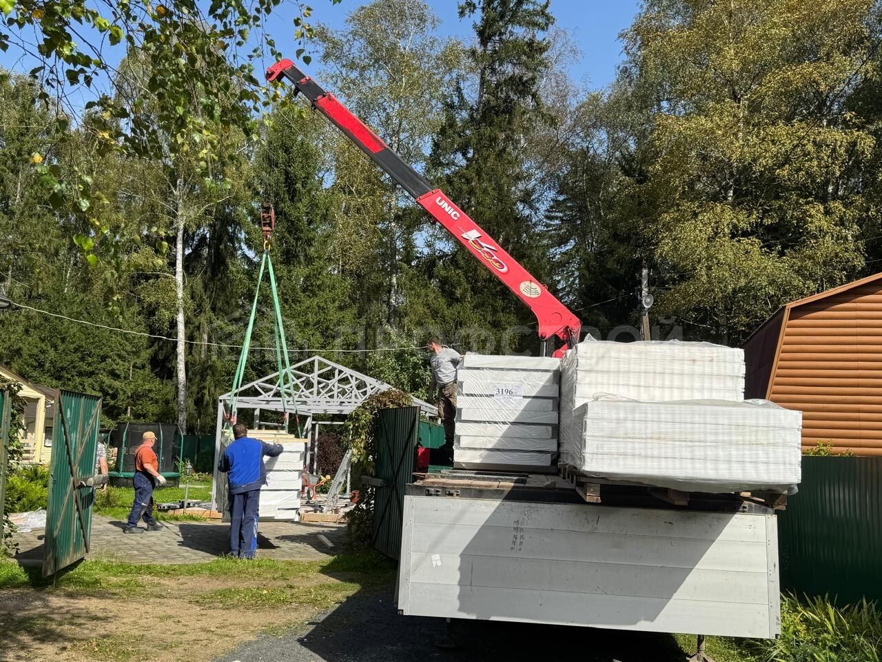- Готовые панели доставляются на участок.